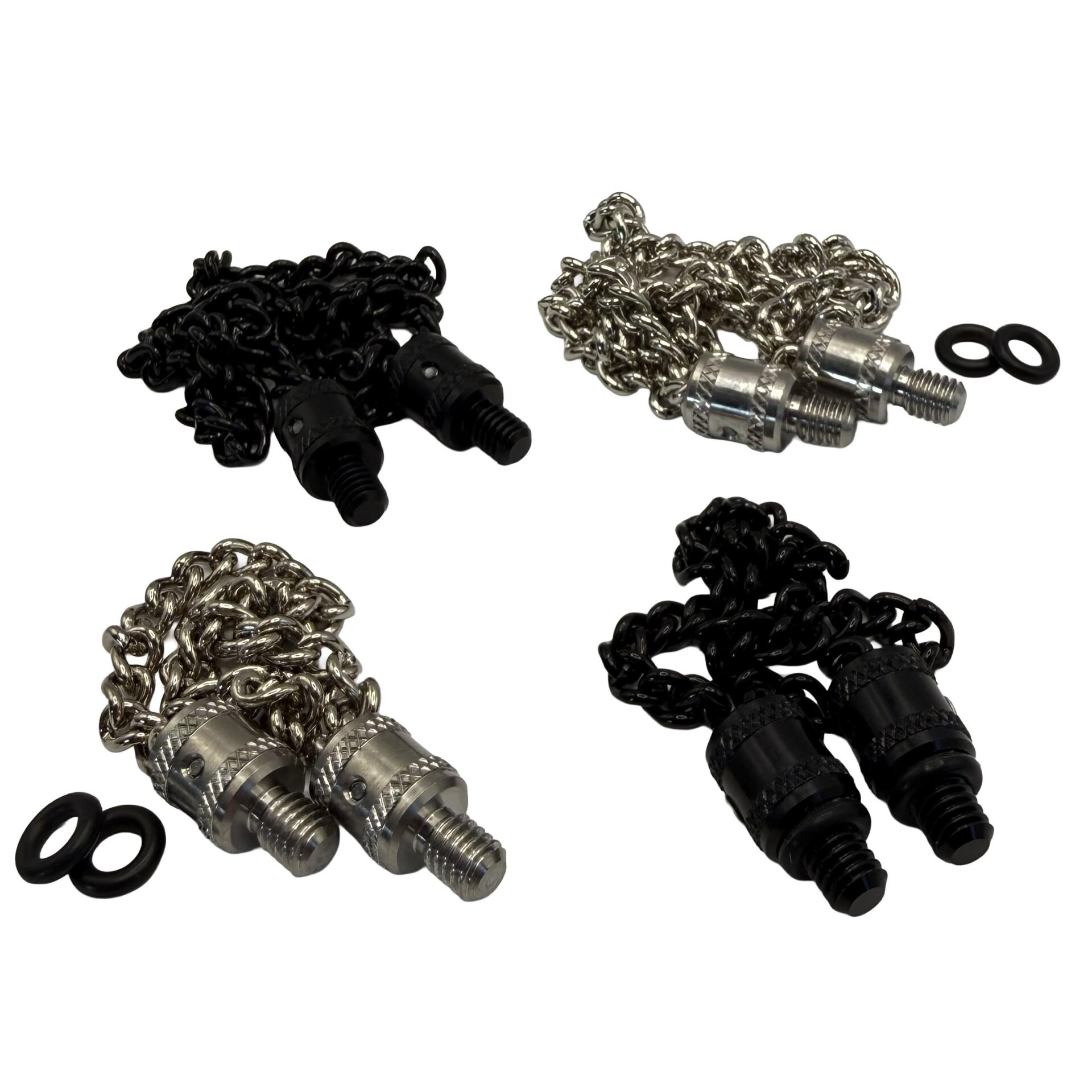 - The chains come in four variations: 6” or 12” and in both Stainless or Black finishes.